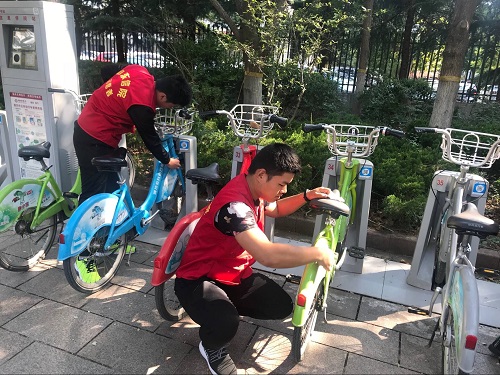 2018年9月26日,电子系团总支组织志愿者开展了“清洁共享单车,为文明城市添光彩”的志愿活动。
